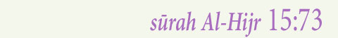 15:73 Commentators were not certain about what caused the roaring blast (al sayhah). Several commentators gave a mystified connotation to the event; however, some of them suggested it was caused by a volcanic eruption. In order to understand the most likely event, first it is necessary to verify if there were any active volcanoes in the area where Lūt lived. Archeological evidences suggest Lūt lived in a fertile land in the Valley of Siddim (the Salt Sea, or the Dead Sea) at the southern end of the Dead Sea in Palestine, where other biblical cities like Admah, Zeboiin and Zoar existed. Although the area in general was formed of metamorphic rocks, in the recent human history, there were no active volcanoes around the region, except very few, mostly in the south of Dahlak Archipelago in the Red Sea. None of these volcanoes could have caused the havoc to the cities Lūt lived due to their geographical distance. Furthermore, had the cities been destroyed by lava erupting from volcano, the Qur’ān would have mentioned molten rock, but the term used in describing the havoc is hardened rock (sijjīl) (11:82; 51:33; 54:34). The term roaring blast, therefore, must be referring to some other event, discussed in the next verse.